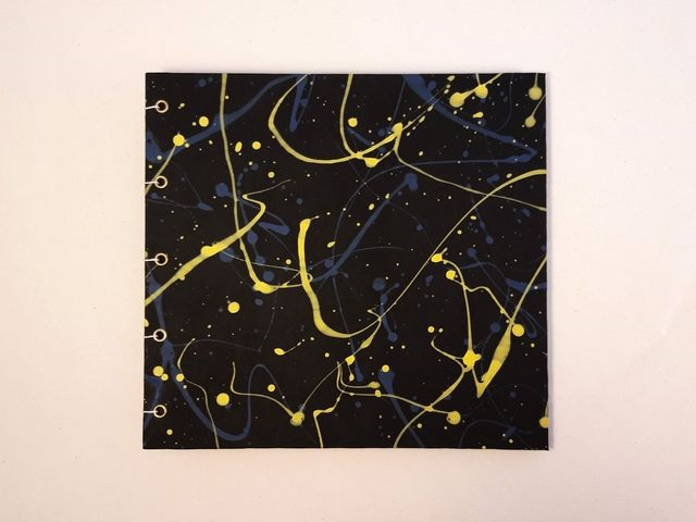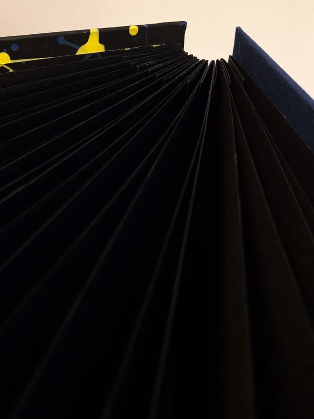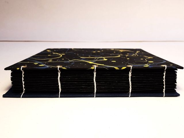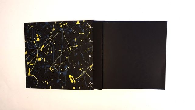Album foto nero con cucitura copta e schizzi gialli e blu