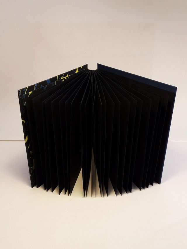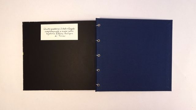 I fogli interni sono in cartoncino nero Murillo e piegati nel lato interno.