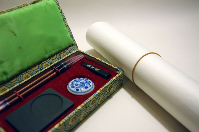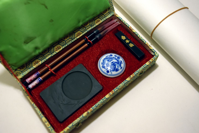 Il kit è composto dai quattro tesori del calligrafo. Sumi: la barretta compatta di inchiostro nero da sciogliere con acqua. Hude: i pennelli. Suzuri: la pietra d’ardesia naturale in cui sciogliere l’inchiostro. Kami: 10 fogli in carta orientale speciale per calligrafia e pittura con la quale catturare il disegno. E in aggiunta: Scaglie di sapone di Aleppo alle olive.